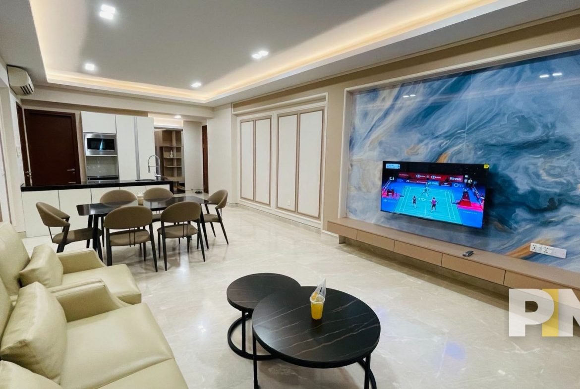 Experience effortless city living in this spacious 2,000 sq ft, fully furnished 3-bedroom apartment of a well-managed building in Kamayut Township. Framed by a serene golf range view, the home features 2 master bedrooms + 1 single, modern comforts. Offered at 2,300 USD, this is a rare move-in-ready rental in one of Yangon’s most convenient neighborhoods.